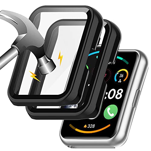 Akancy [2 pièces Coque Rigide Compatible avec OPPO watch free/Huawei band 6 avec Film de Protection, Dureté 9H Hart Coque PC Verre Trempé Mince pour Smart OPPO watch free/Huawei band 6, noir