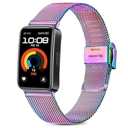 SMYAOSI Magnétiques Tressé Bracelet pour Huawei Band 9/ Huawei Band 8 Smart Watch, Réglable Sport Elastique Nylon Remplacement Bracelets pour Huawei Band 9/ Huawei Band 8 (Arc-En-Ciel)