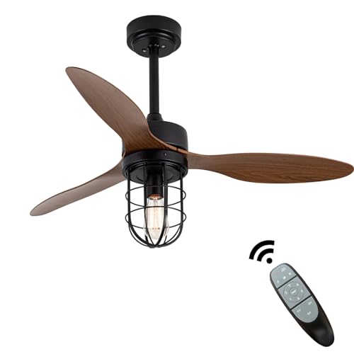 Vintage Plafonnier Avec Ventilateur TéLéCommande Silencieux Industriel E26 Lampe Ventilateur Plafond 6 Vitesses Dc Smart Ceiling Fan With Light Salon Noir 3 Pales Pour Chambre, Cuisine, Noir