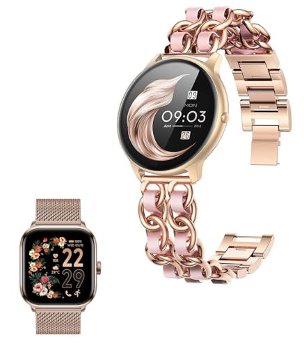 MBROS Compatible pour Ice-Watch - Ice Smart Montre Connectée, Metal & Cuir Bracelet Compatible pour Ice-Watch - Ice Smart Montre Connectée Femme (Or Rose & Rose)