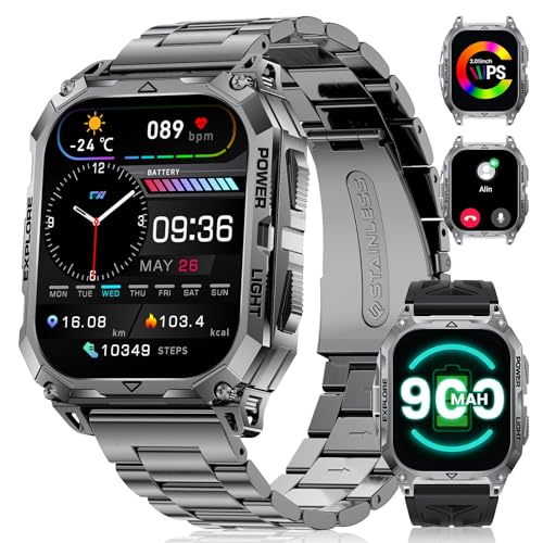 BENYAR SMART Montre Connectée Homme Militaire(3 Bracelets), 1.43" AMOLED Smartwatch avec Appel Bluetooth, Fréquence Cardiaque, SpO2, Moniteur de Sommeil, 120+ Sportifs, IP68 Étanche pour iOS Android