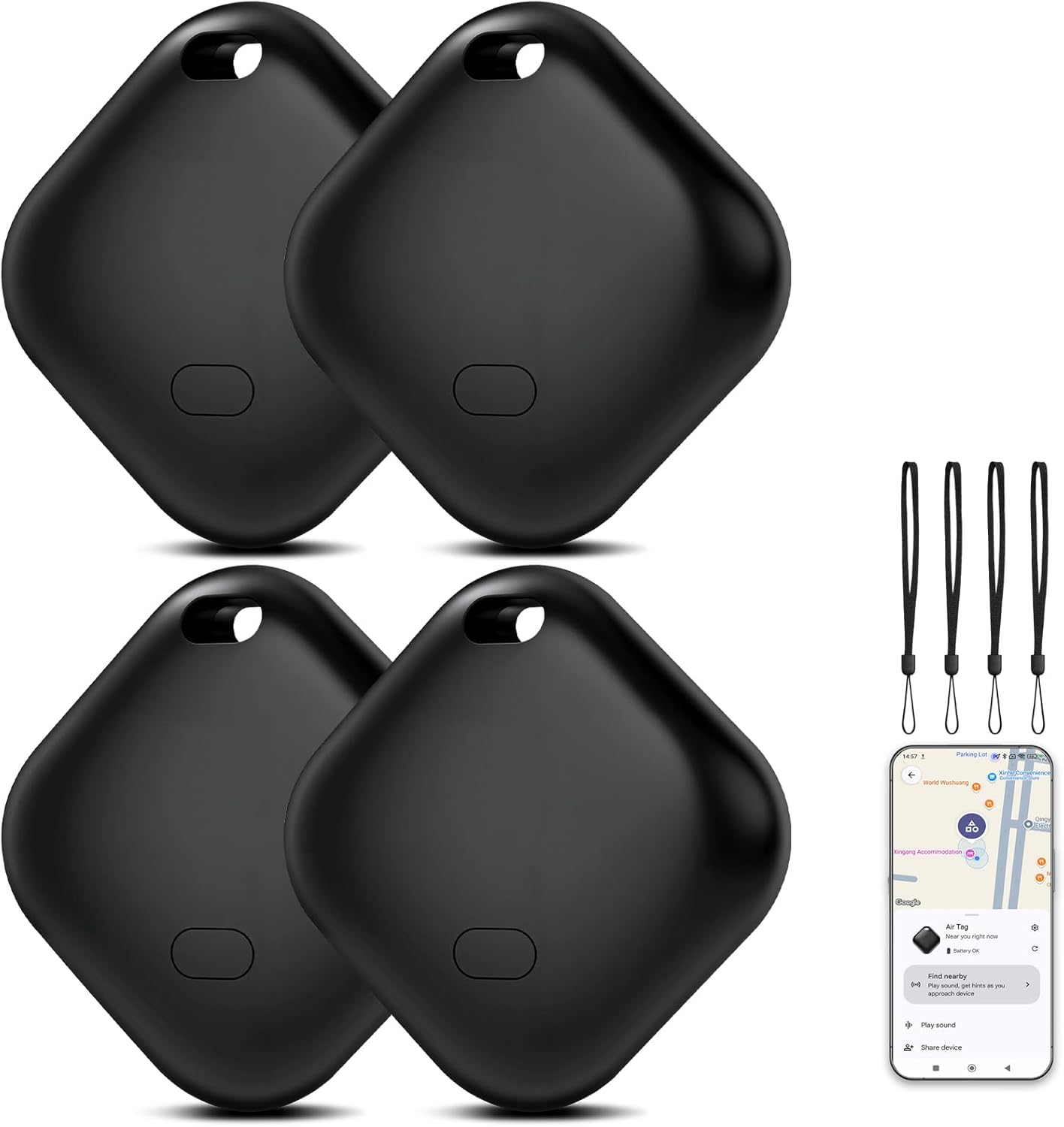 Smart Air Traceur Tag, Apple et Android Traceur Lot de 4, Fonctionne avec l’app Google Localiser ou Apple Find My, IP67, Batterie de Rechange Localisateur D’Objets pour clés/Portefeuilles (Noir)
