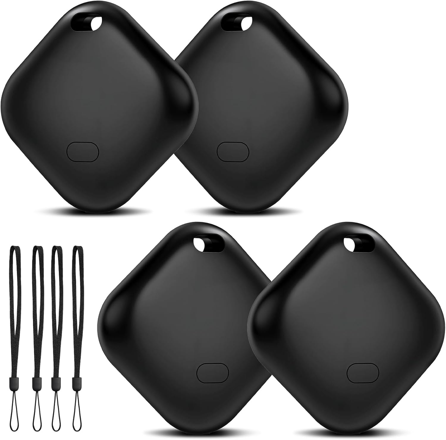 Smart Tracker Tag pour Android, trouveur de clés compatible avec Google Trouver mon appareil APP (Android seulement), porte-clés Bluetooth pour vélos, bagages, porte-monnaie et valises, noir pack de 4