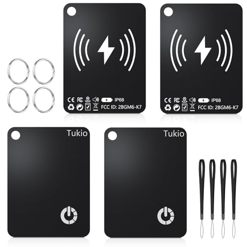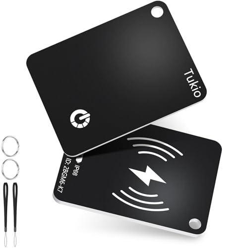 Tags(Noir) 2 Pack- Traceur Card Fonctionne avec Apple Find My(Uniquement iOS), Bluetooth Smart tag avec Recharge sans Fil, IP68 étanche, Traceur Compatible avec Anneau de clés et dragonne en Nylon.