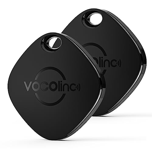 VOCOlinc Smart Air Tag Apple Traceur Lot de 2 Compatible avec Apple Localiser App (iOS Uniquement), Bluetooth Tracker Localisateur d'Objets pour Portefeuille/Bagages/Valise/Sac, Batterie Remplaçable