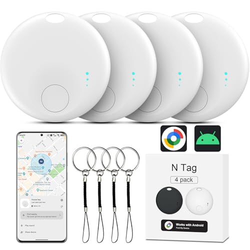 Smart Android Tracker Tag Blanc 4 Pack- Traceur Bluetooth Compatible avec Apple Localiser et Google Find My Device, Smart GPS Localisateur pour Clés, Portefeuilles et Valises, Batterie Remplaçable