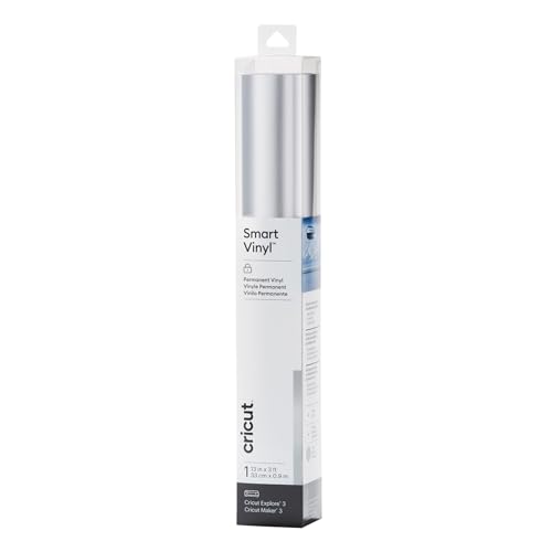 Cricut Vinyle Adhésif Permanent pour Plotter | Rouleau 30,5 cm x 6,1 m | Argent | Vinyle Auto-Adhésif pour Décoration, Stickers et Mur | Compatible avec toutes les machines Cricut | Smart Vinyl