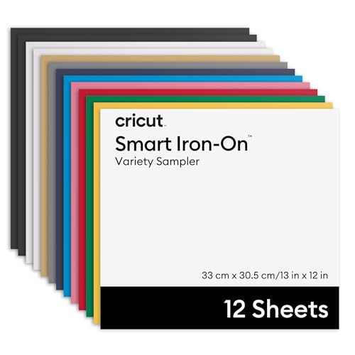 Cricut Vinyle Smart Iron-On, sans tapis de découpe, paquet varié, 33 x 30,5 cm (13 po x 12 po), 12 pièces