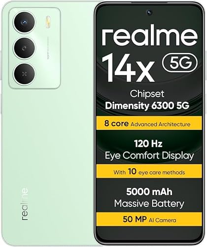 realme 14X 5G Smartphone 8+256 Go, 5G Dimensity 6300, écran Eye Comfort 120 Hz, Résistance aux Chocs de qualité Militaire, Appareil Photo I.A. de 50 MP, Batterie de 5 000 mA·h, Vert