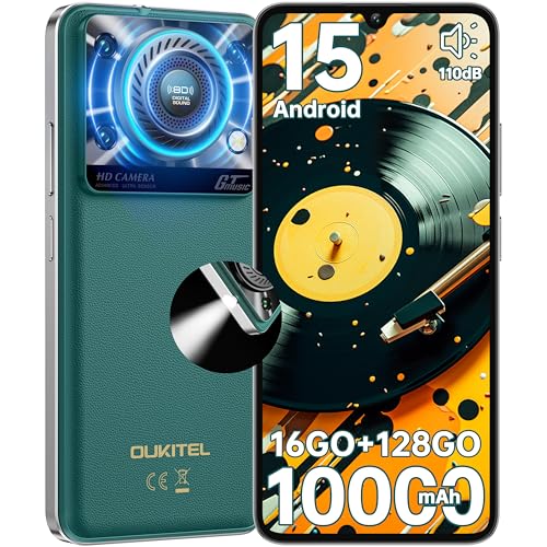 OUKITEL C69 téléphone Portable - 7.2" 120Hz 64MP+8MP Telephone Portable 6000mAh 16GO RAM+128GO ROM/TF 1TO Android 15,Smartphone Pas Cher Empreinte Digitale/Face ID/OTG/GPS,Vert