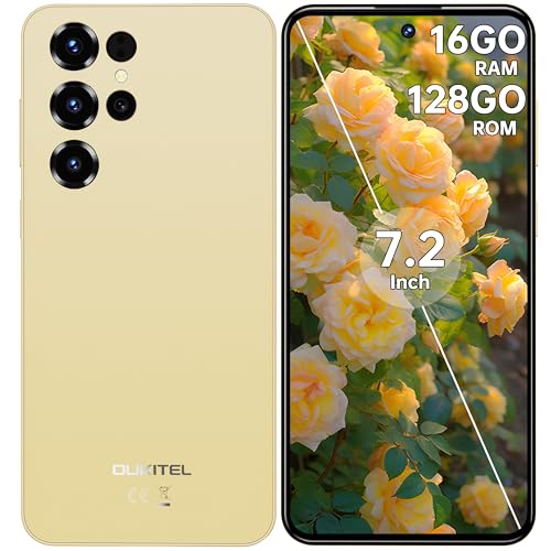OUKITEL C68 - Telephone Portable 7.2 Pouces, 120Hz Smartphone Android 15 Telephone Portable Pas Cher Dual Sim 4G,16(4+12) GO RAM+128GO ROM,64MP+8MP, 6000mAh, Fingerprint/Face ID/OTG/GPS,Gold