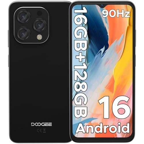 DOOGEE N55 Android 16 Telephone Portable, 16 Go de RAM+128 Go de ROM/TF 2 to, Smartphone Écran 6.56'' HD+90 Hz,Unisoc T7200,Smartphone Pas Cher Batterie 5150mAh,AI Caméra 8MP+13MP,Widevine L1/Face ID