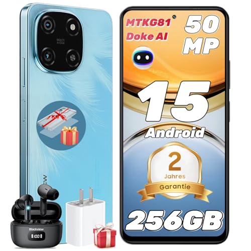 Blackview Wave 8 Téléphone Portable, Android 15 Smartphone Pas Cher Écran 6.56" HD+ Display, 12GB+128GB/ 2 TF Smartphone, Double SIM/5000mAh/Octa-Core/90Hz/13MP+8MP/Fingerprint/GPS/OTG/2Ans Garantie