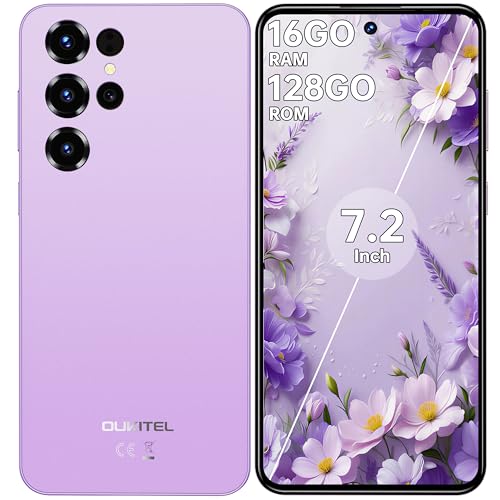OUKITEL C68 Telephone Portable Android 15 - Smartphone Pas Cher 120Hz Telephone Portable Pas Cher 7.2 Pouces, 6000mAh, 16GO+128GO,Dual Sim 4G, 64MP+8MP,Fingerprint/Face ID/OTG/GPS,Violet