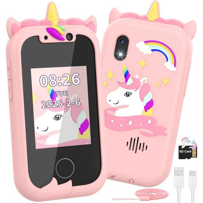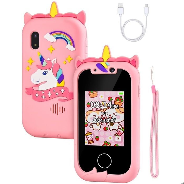 Telephone Portable pour Enfants Smartphone Enfant Jouets Fille 3-10 Ans Téléphone Licornes 24 Pouces Cadeaux danniversaire Noël