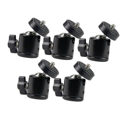 DECORNIJIA Lot de 5 Têtes Sphériques Universelles 1/4 Pouces en Métal Support pour Smartphone Compatible Trépied Tête d'Amortissement Panoramique Accessoire Photo Vidéo Portable et Léger