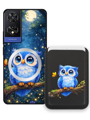 Sunrive Coque Portefeuille pour TCL 505 (T509K) (T5094) avec Porte-Cartes Magnétique Amovible, Étui Porte Carte Mignon avec Support, Coque Antichoc avec Porte Carte, Protection Smartphone - Hibou