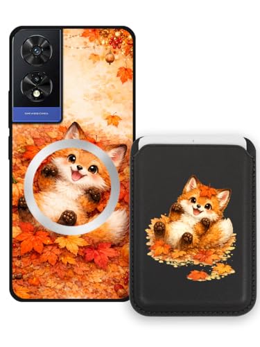 Sunrive Coque Portefeuille pour TCL 505 (T509K) (T5094) avec Porte-Cartes Magnétique Amovible, Étui Porte Carte Mignon avec Support, Coque Antichoc avec Porte Carte, Protection Smartphone - Renard