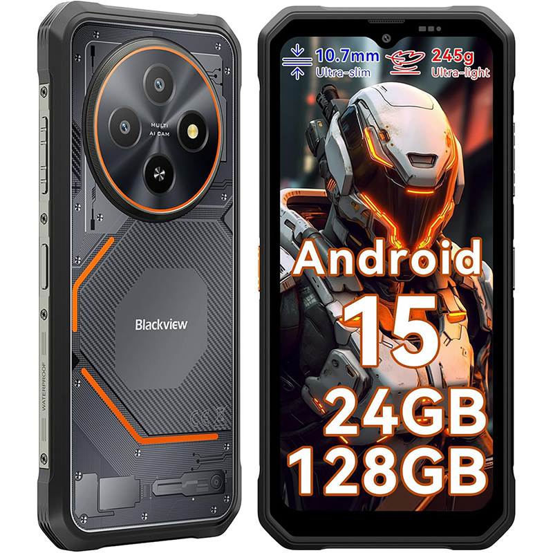Blackview BV6200 Plus Téléphone Incassable, 24GB+128GB, Batterie 11000mAh, Haut-Parleur Ultra-Fort 3W 98dB, 16MP+13MP, 6,56'' HD+, Android 15 Dual SIM IP68 Étanche Smartphone Débloqué, NFC Orange