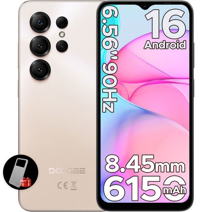 DOOGEE Note58 Pro Telephone Portable 4G Android 15, 32 Go RAM + 256 Go ROM, Batterie 6250mAh, Écran 6.75 Pouces HD+ 90Hz, AI Camara 16MP, Octa-Core, Double SIM, NFC, Smartphone Debloqué, 2025, Or