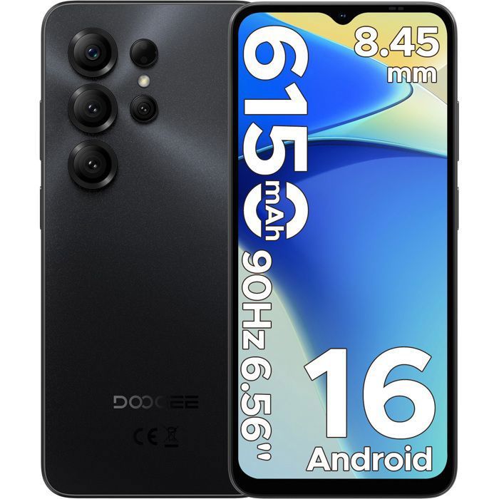 Smartphones DOOGEE Note56 X 24Go+64GoTelephone Portable 6150mAh 6.56 90Hz 8MP Smartphone Pas Cher NFC GPS-Noir