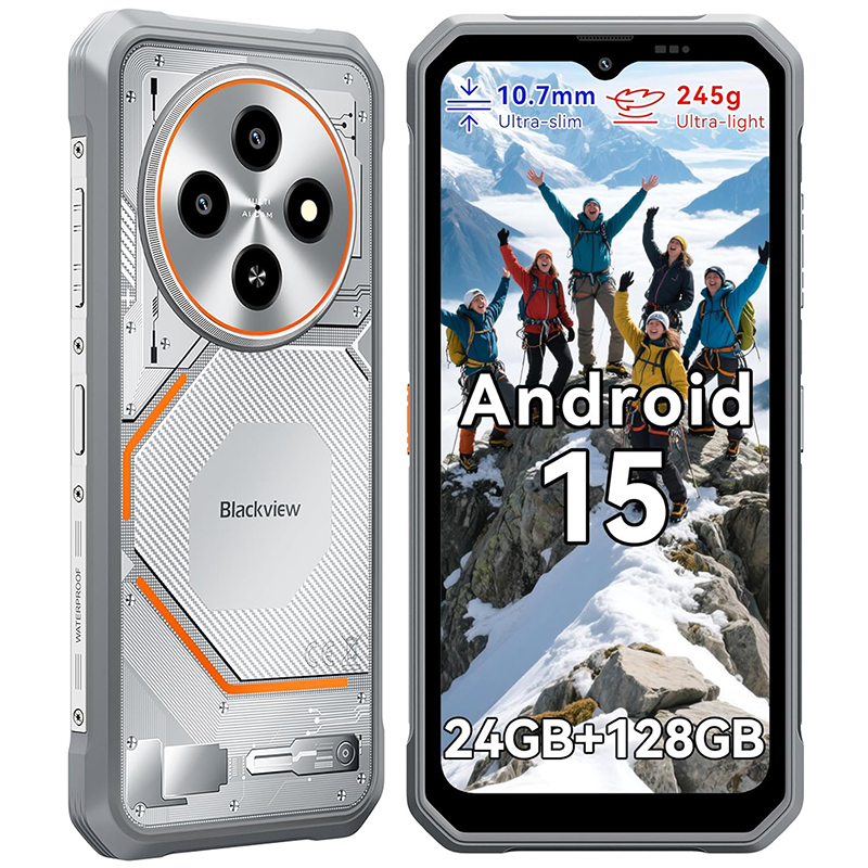 Blackview Rugged Smartphone(NFC) Android 14, 12 Go+128 Go/2 To Extensible/Octa-core, 285 g et 13,5 mm, 6,56" HD+, NFC/Fingerprint/Mode gant/4G Dual SIM Téléphone portable robuste