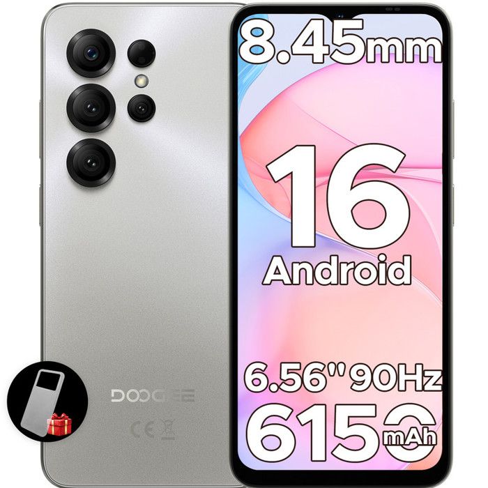 DOOGEE Blade10 Pro Energy Telephone Incassable Android 15, 6 Go+256 Go, 10.7mm Thin, 6150mAh, 6.56" IPS HD+ 90Hz, 50MP AI Camara, Octa-Core, Double SIM, NFC, Smartphone Incassable Debloqué, Argent