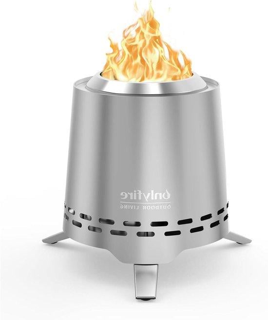 Foyer de table Smokeless Feuer Bowl avec support pour casseroles et sac de transport Combustion sûre Foyer de table Fonctionne avec des pellets ou du bois Cônique argenté