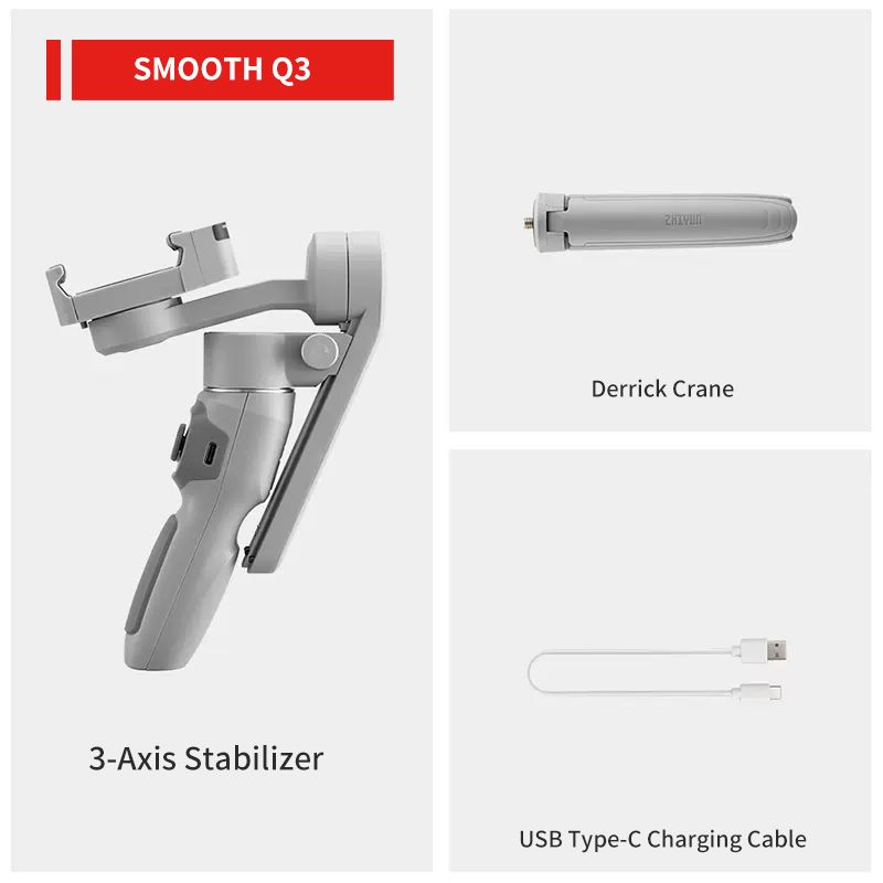 ZHIYUN SMOOTH Q3-Stabilisateur de cardan 3 axes flexible pour téléphone portable,iPhone 14 Pro,Xiaomi,Huawei - Type Grey Standard