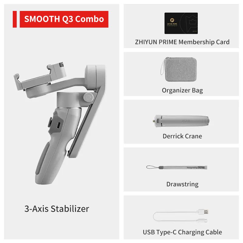 ZHIYUN-SMOOTH Q3 Stabilisateur de cardan pour smartphone,cardan 3 axes,iPhone 14 Pro Max,Xiaomi,Huawei,DJI OM 6 - Type SMOOTH Q3 Combo
