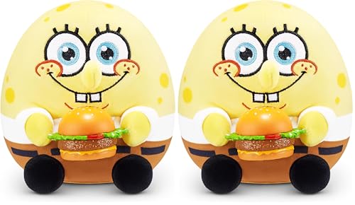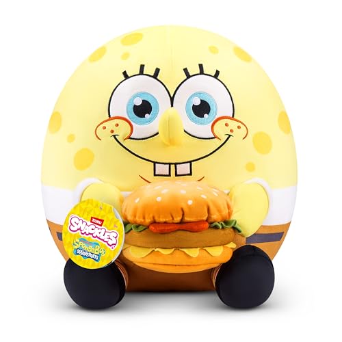 Peluche Snackles Personnage sous Licence Bob l’éponge carré 35 cm de ZURU, Peluche avec Accessoire Snack