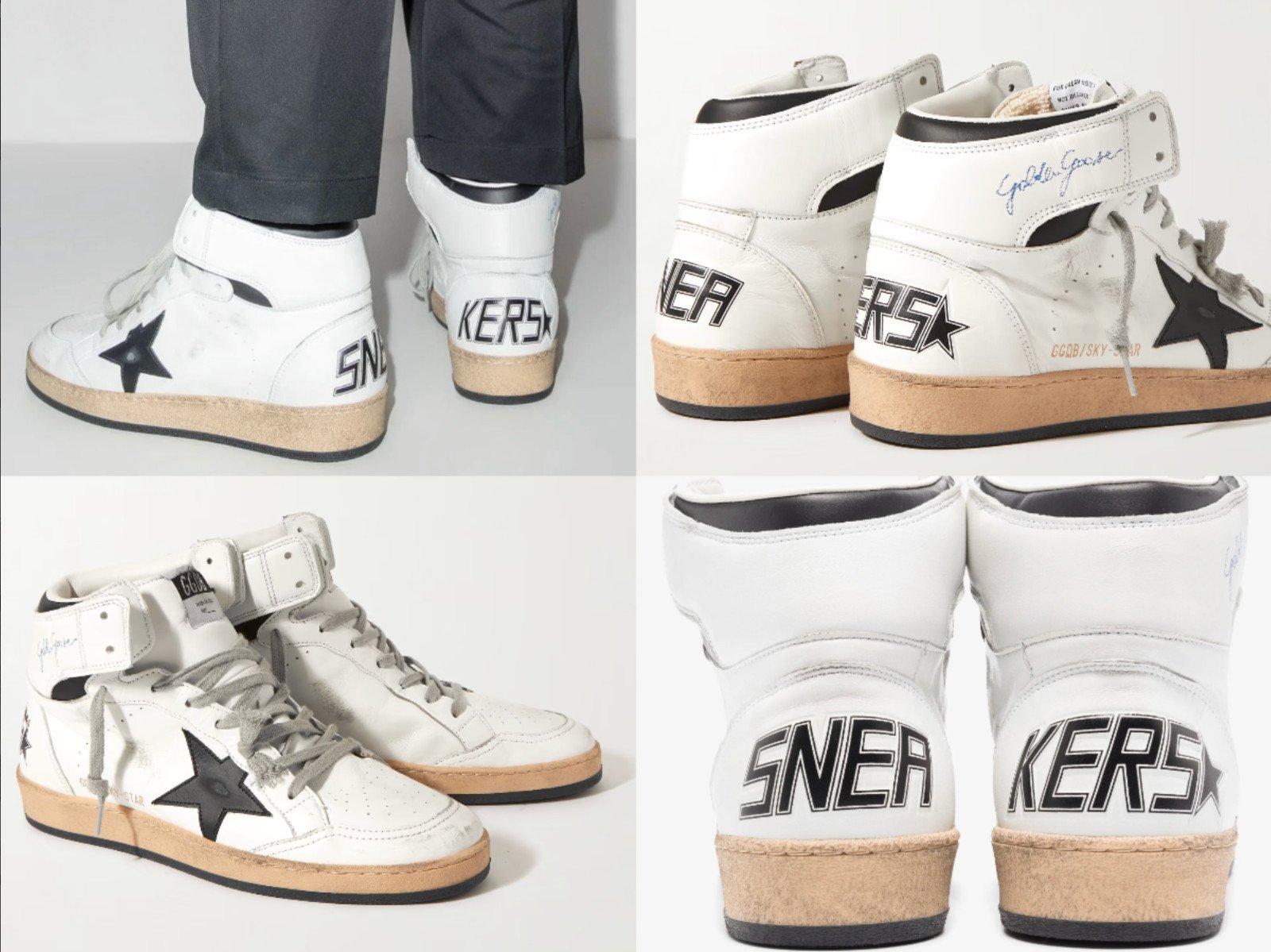 GOLDEN GOOSE Sky Star Distressed Leather High-Top Sneakers Chaussures BNWT 42