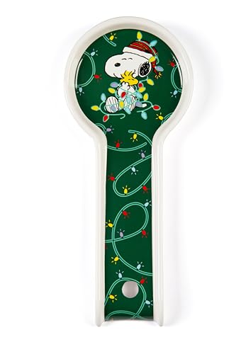 Excelsa Peanuts Shiny & Bright Posamestol en céramique, vert et blanc, décoré avec Snoopy et lumières de Noël, 25 x 11 x 2,3 cm