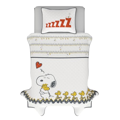 Franco Peanuts Snoopy & Woodstock Parure de lit 2 pièces Super Douce et Confortable pour lit Simple avec Couvre-lit et taies d'oreiller Motif Snoopy & Woodstock