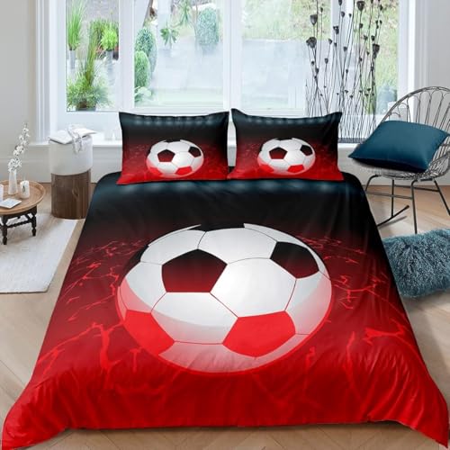 Loussiesd Football Housse de Couette 220x240cm Soccer Ball Modèle Parure de Lit Sport thème décor Literie Set Jeux compétitifs Parure de Lit 3Pcs pour Enfants Garçons Filles