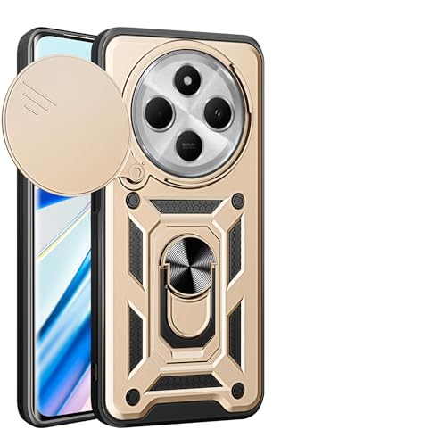 Jiajihua Compatible avec Tecno Spark 30C 4G Coque,Compatible avec Tecno Spark 30C 4G kl5 Socle magnétique [PC+TPU] 2 en 1 lentille coulissante Gold