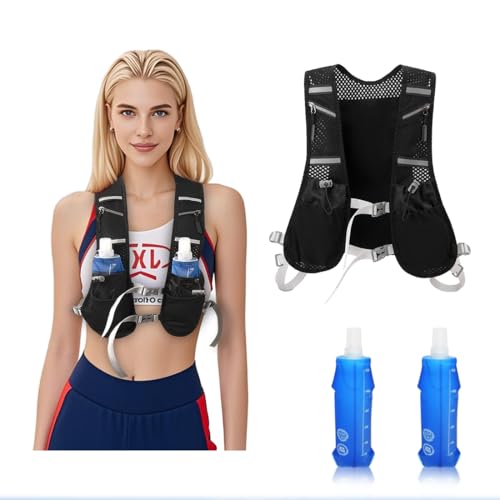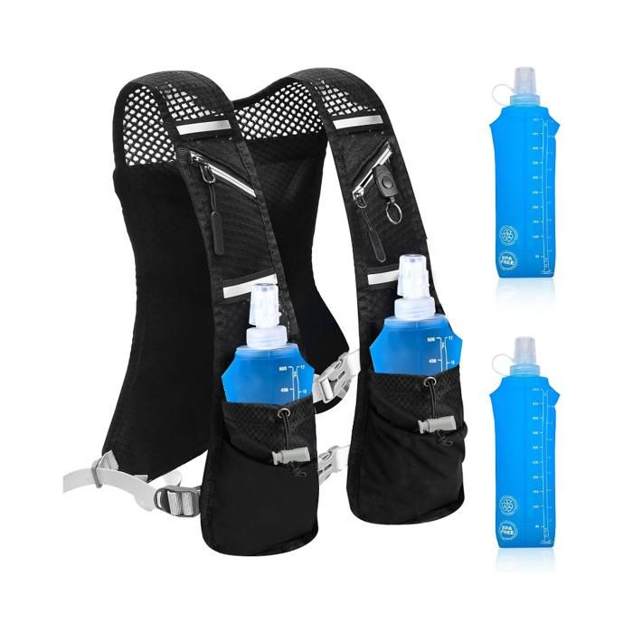 Gilet Hydratation Running avec 2 Soft Flask 500 ML Réfléchissant Gilet dhydratation de Course à Pied pour Femmes et Hommes Sac