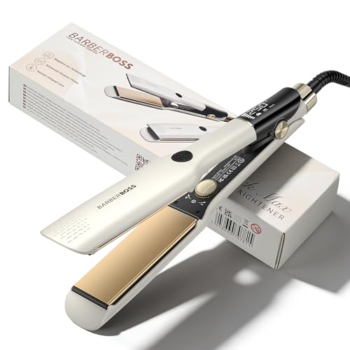 BarberBoss Lisseur avec technologie céramique flottante, lisseur à plaques plates, lisseur professionnel pour un coiffage lisse et sans frisottis, ions négatifs et soin à la kératine, (QR-8421, blanc)
