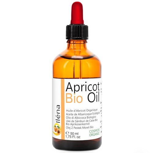 Oïléna BIO Huile d'Abricot 100% Pure et Naturelle Pressée à Froid: Huile Hydratante Après-Soleil, Conditionneur pour Cheveux, Ongles et Cuticules, Soin de la Peau Sensible - 50 ml