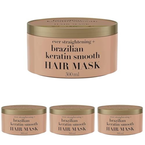 OGX | Masque pour les cheveux lissant à la kératine brésilienne (pot de 300 ml) – Masque capillaire pour régénérer les cheveux et faciliter le coiffage – Masque pour des cheveux brillants et doux