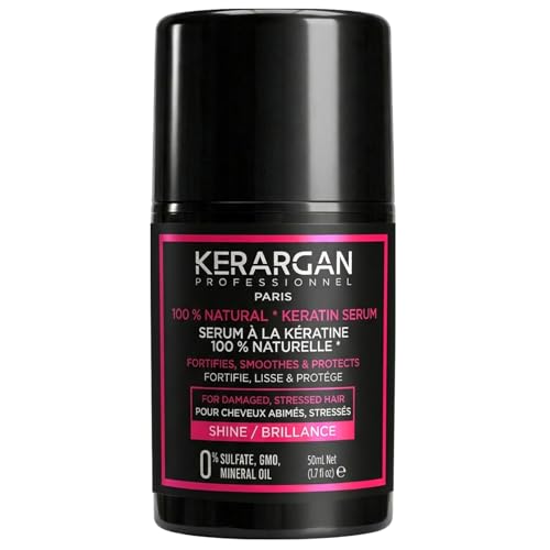 Kerargan - Sérum Capillaire Ultra Réparateur à la Kératine pour Cheveux Abîmés - Protecteur, Lissant - Huiles Naturelles de Ricin, Macadamia, Argan - Sans Sulfate, OGM, Huile Minérale - 50ml