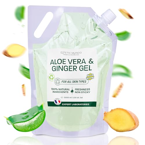 Gel Aloe Vera & Gingembre – Soin Naturel à Base de Feuille Fraîche – Hydratant, Tonifiant & Raffermissant – Visage, Corps, Cheveux – Après-Soleil, Jambes Lourdes – Aloe Écologique (5000)
