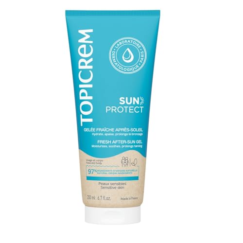 Topicrem - Sun Protect, Gelée Fraîche Après-Soleil Apaisante Visage et Corps - Hydrate 48h, Prolonge le Bronzage - Soin Solaire Peaux Sensibles - Aloé Vera et Karité - 200 ml