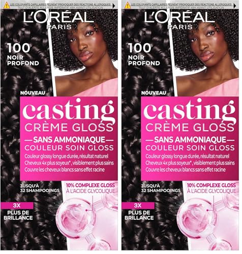 L’ORÉAL PARIS - Coloration Cheveux Semi-Permanente Ton sur Ton - Couleur Soin Gloss - Sans Ammoniaque - Casting Crème Gloss - Nuance : Noir Profond (1.0) (Lot de 2)