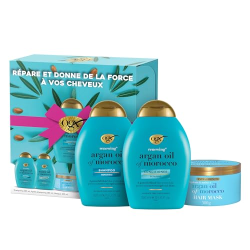 OGX - Coffret Soin Cheveux Huile d'Argan du Maroc (Shampooing + Après-Shampooing + Masque) – Soins capillaires pour cheveux secs et abîmés – Sans sulfate ni parabènes