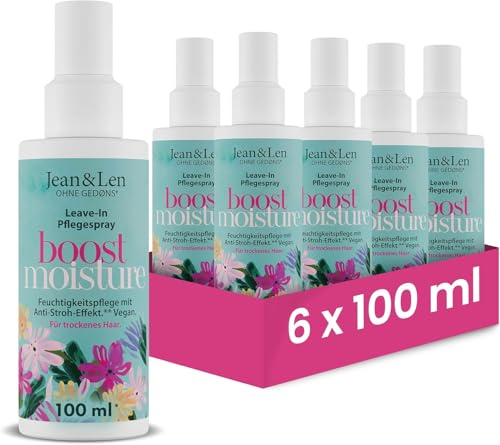 Jean & Len Boost Moisture Leave In Spray de soin, en kit pratique, pour cheveux secs, avec effet anti-paille, soin capillaire sans rinçage, pour des cheveux brillants, sans silicones, vegan, 6x 100 ml