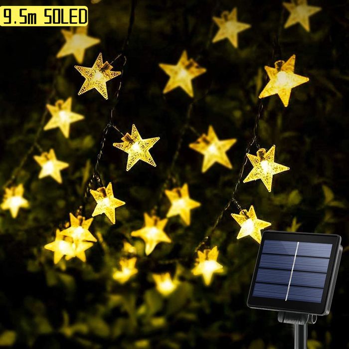 Guirlande Lumineuse Solaire Noël 50 LED à Etoile 9.5m 8 Modes Décoration pour Extérieur Jardin Chambre Fête Soirée - Blanche Chaude