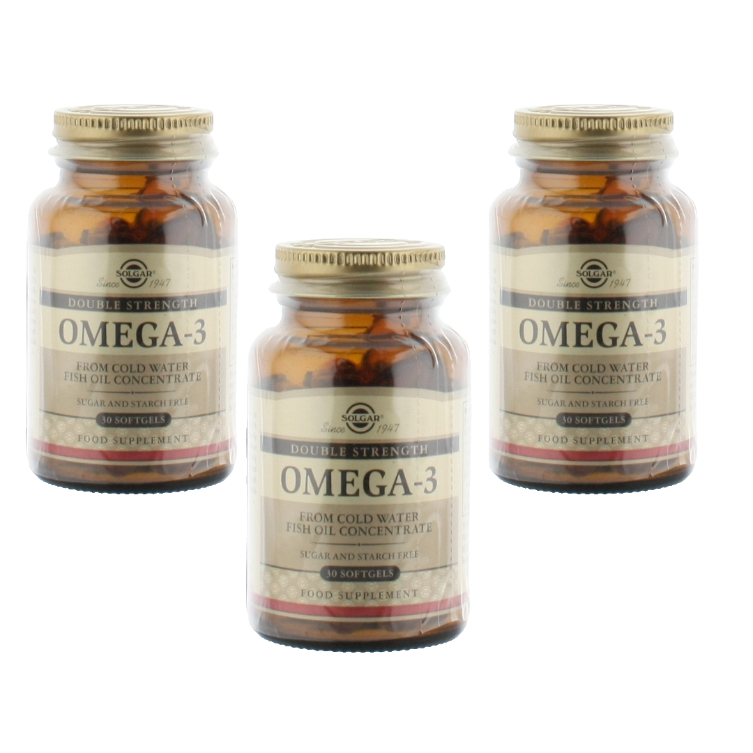 3 X SOLGAR OMEGA 3 DOUBLE STRENGHT 30 SOFTGELS - LIVRAISON GRATUITE