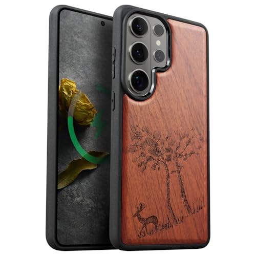 Carveit Magnétique Coque pour Samsung S26 Ultra Bois Étui [Antichoc Pare-Chocs en TPU Souple] Case de Téléphone Compatible Magsafe Galaxy S26 Ultra Coque (Rosé-Cerf Solitaire au Milieu)