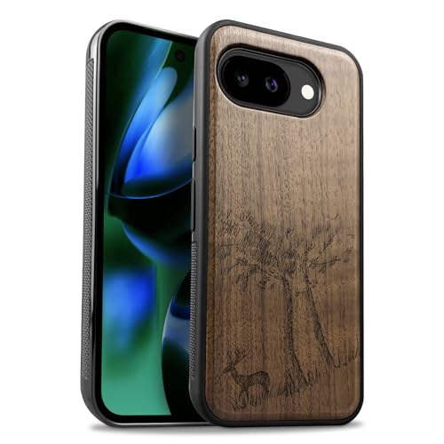 Carveit Coque Magnétique pour Google Pixel 10a Étui Bois Case de Téléphone Antichoc Bumper TPU Compatible Magsafe Pixel 10a Coque Bois Etui (Noyer-Cerf Solitaire au Milieu)